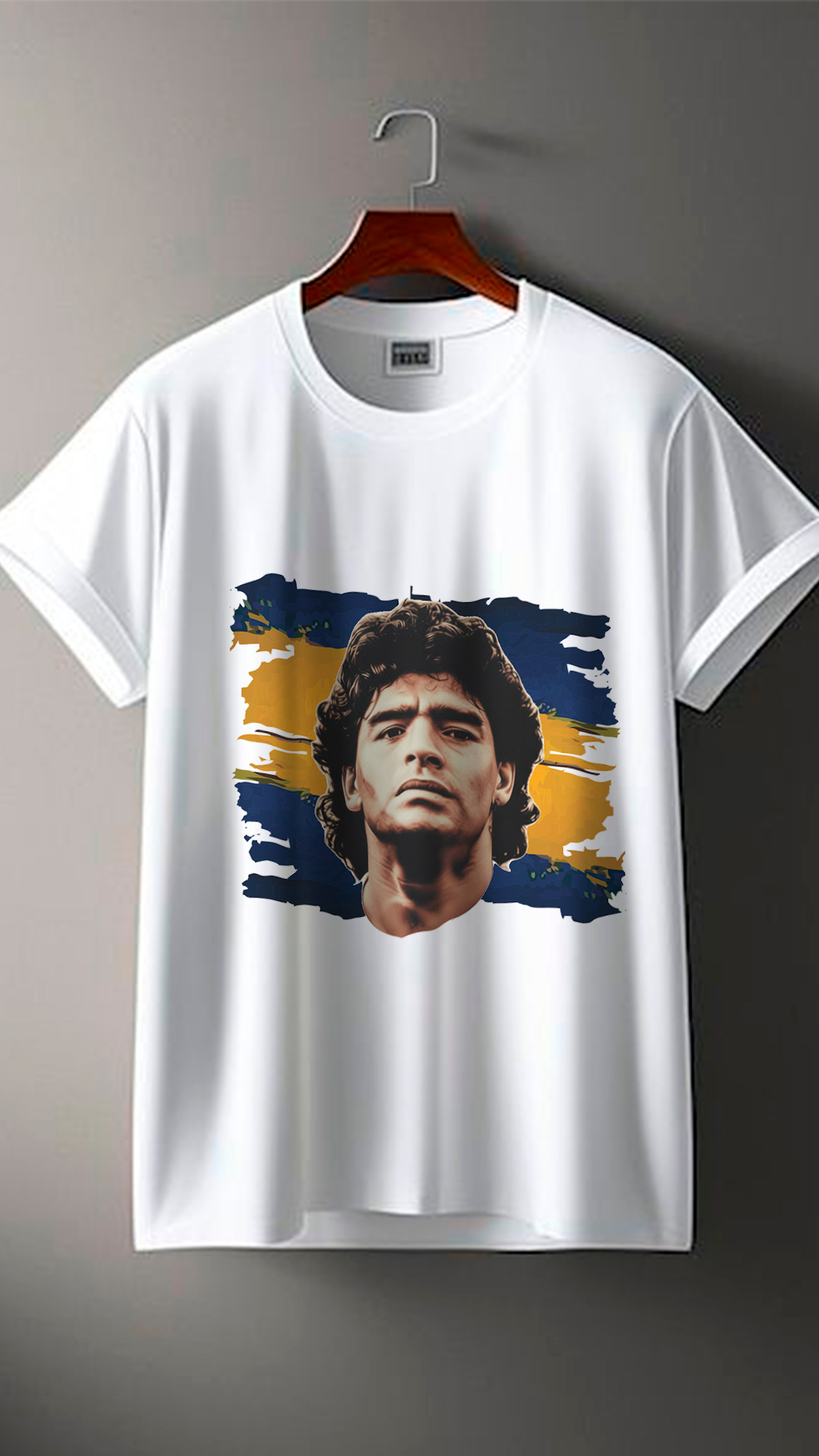 Remera blanca con un diseño destacado de Diego Armando Maradona en el frente, acompañado por un fondo artístico en los colores azul y amarillo de Boca Juniors. De estilo moderno y vibrante, es una prenda ideal para fanáticos que quieren llevar el legado del ídolo xeneize a todas partes. Fabricada en tela suave y cómoda, perfecta para uso diario o para lucir en días de partido.
