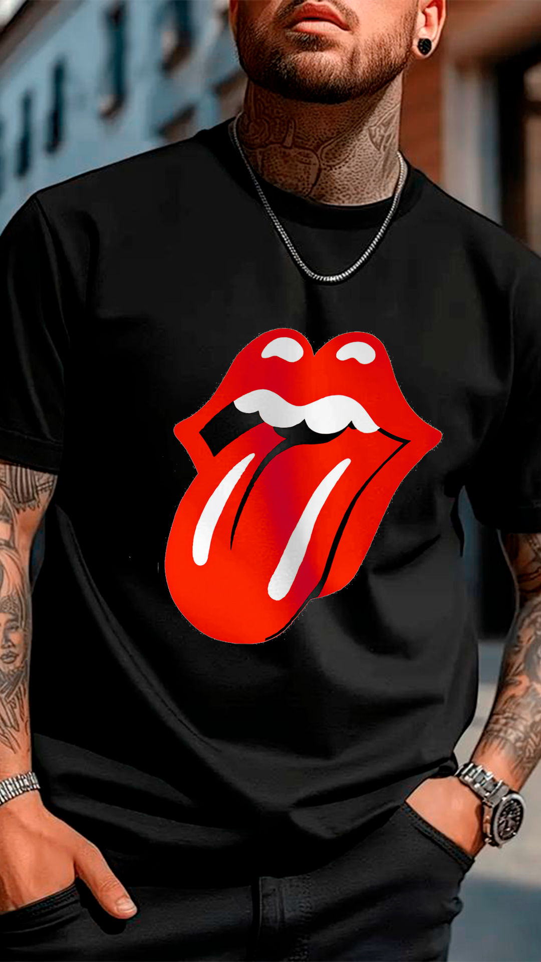 ¡Luce el símbolo más atrevido del rock and roll! Esta remera blanca de corte clásico y cómodo presenta el icónico logo de The Rolling Stones: los labios rojos y la lengua extendida —diseñado por John Pasche en 1970— que se convirtió en un emblema mundial de rebeldía, energía y actitud.